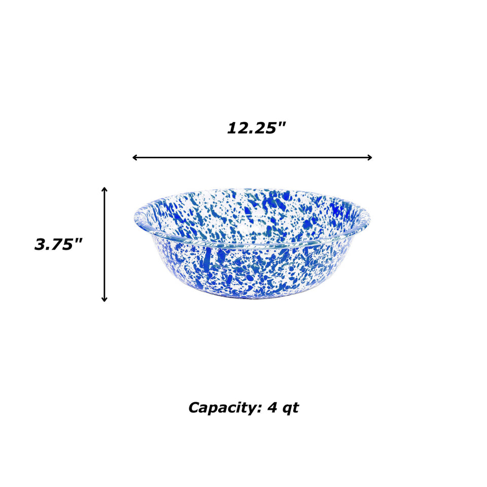 Crow Canyon Home Enamelware Yellow Marble Splatter Basin holds 4 quarts to the rim. 12" diameter.