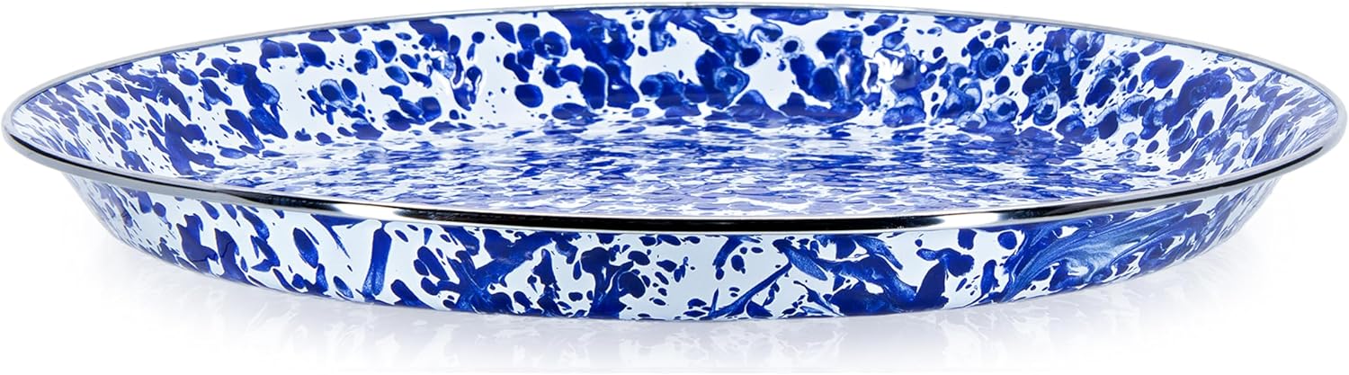 Golden Rabbit Cobalt Blue Swirl 15.5" Enamelware Serving Tray