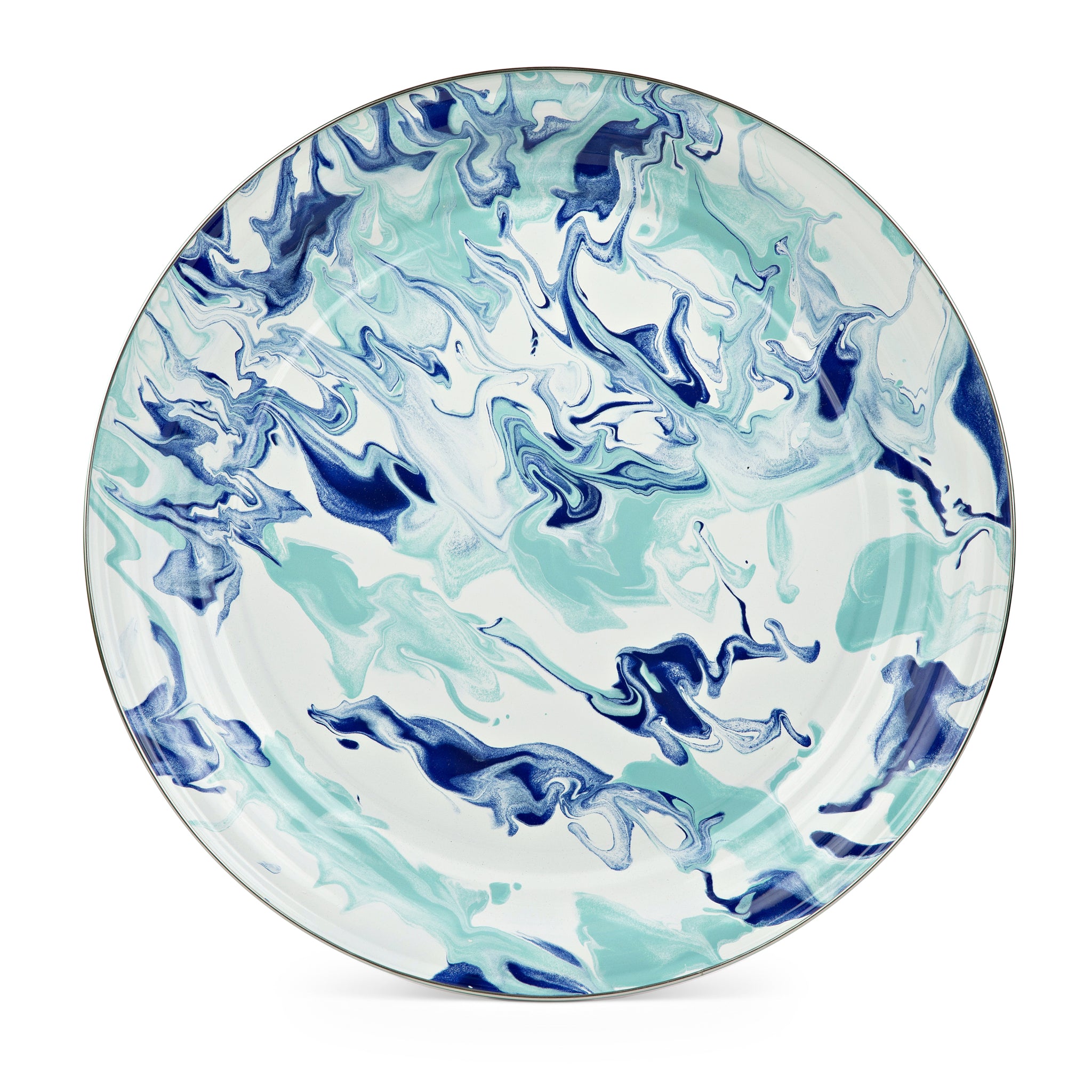 Golden Rabbit Lagoon Blue Swirl 20" Enamelware Serving Tray