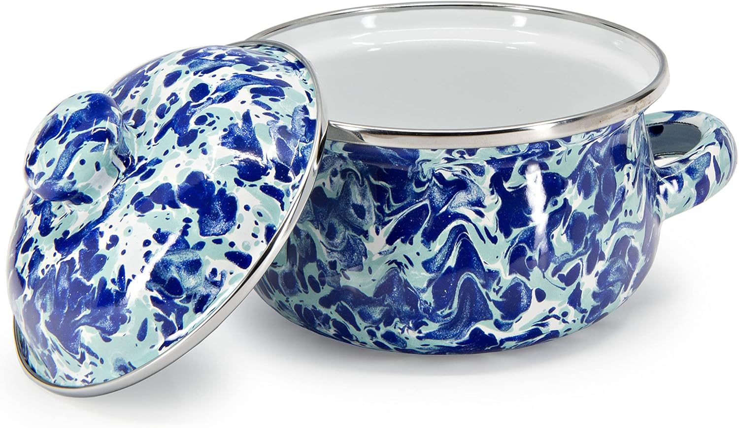 Golden Rabbit Ocean Swirl Enamelware Tureen Bowls, Set of 2