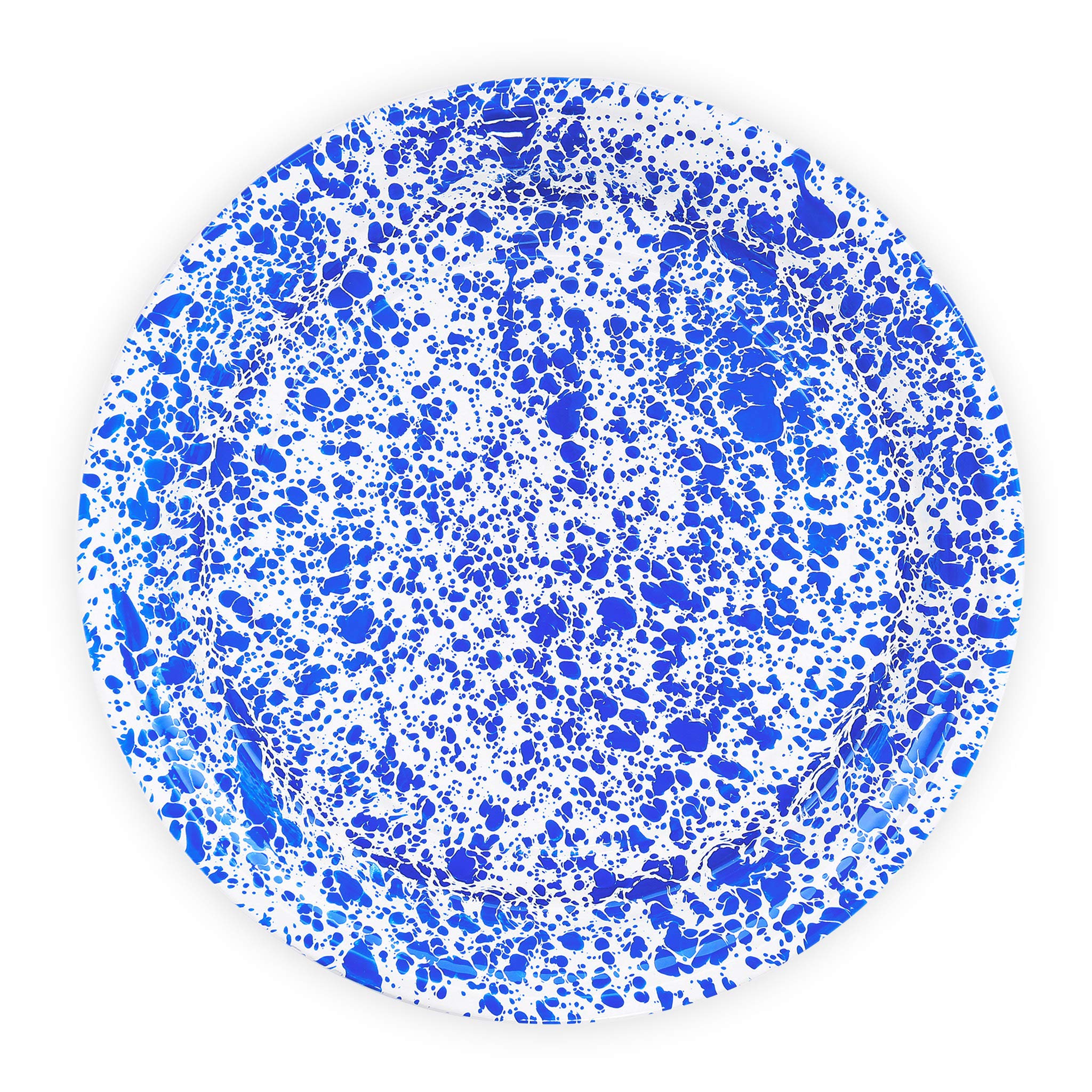 Crow Canyon Large , 20.5" Round Enamelware Tray, Blue Splatter