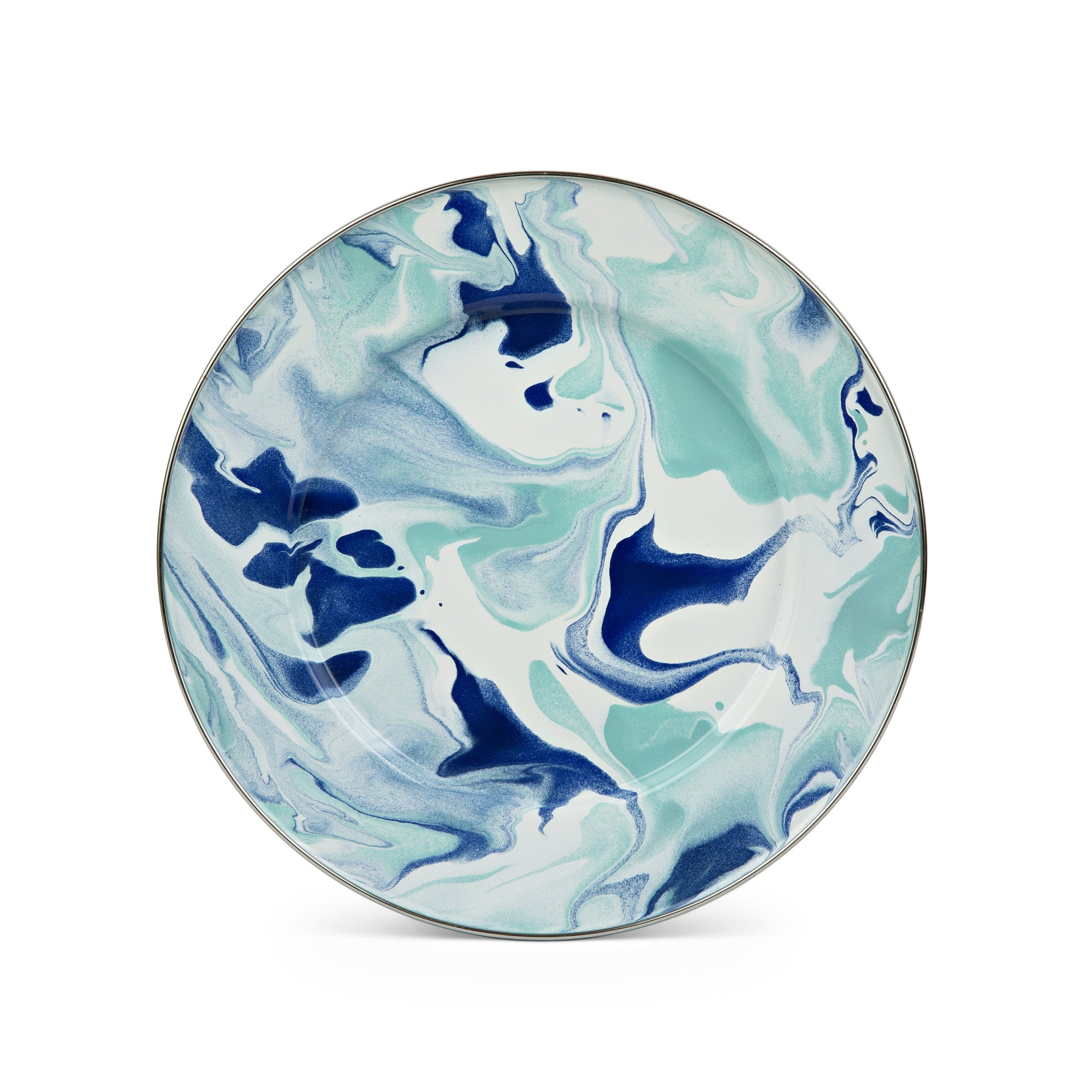 Golden Rabbit Lagoon Blue Swirl Enamelware Dinner Plate, 10.5", Set of 4