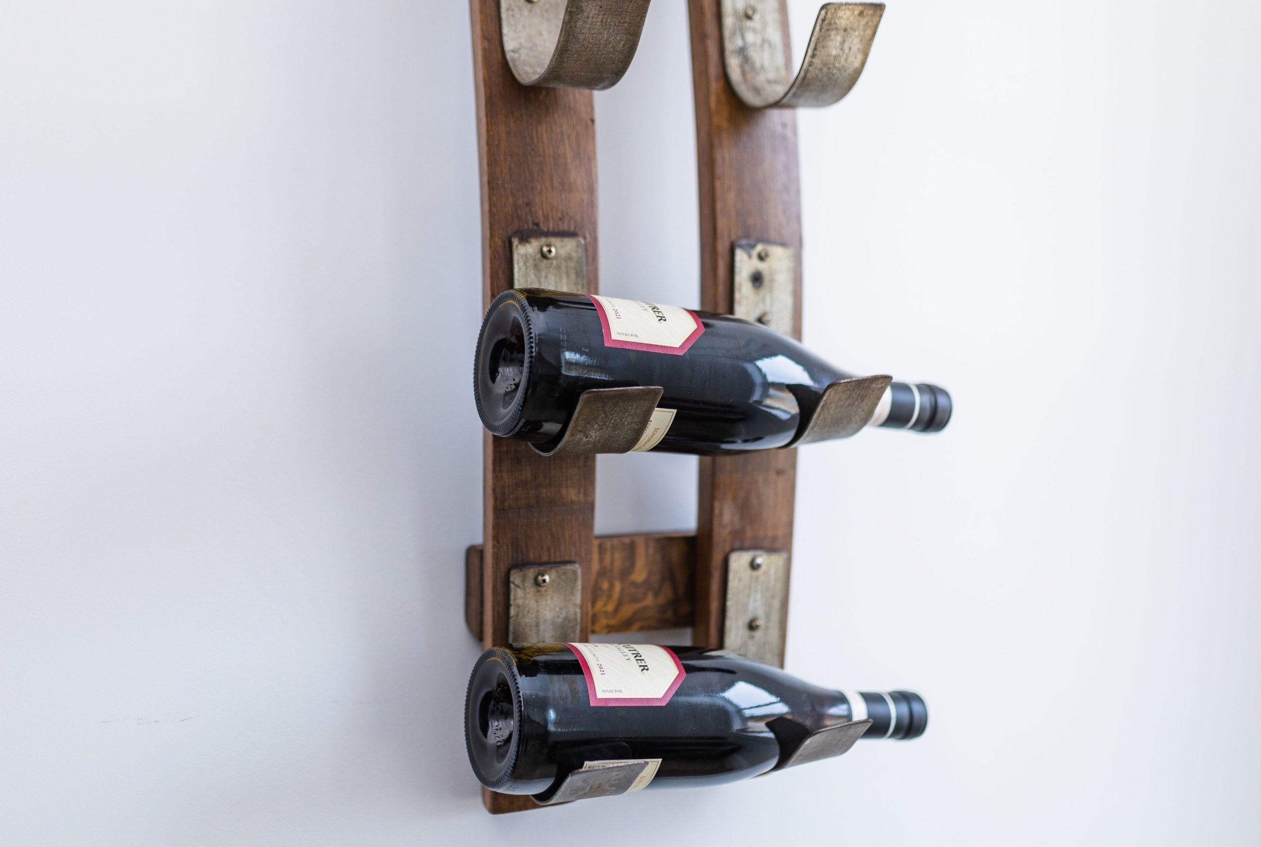 Wall Mounted 4 Bottle Wine Rack, made from Reclaimed Wine Barrels Staves